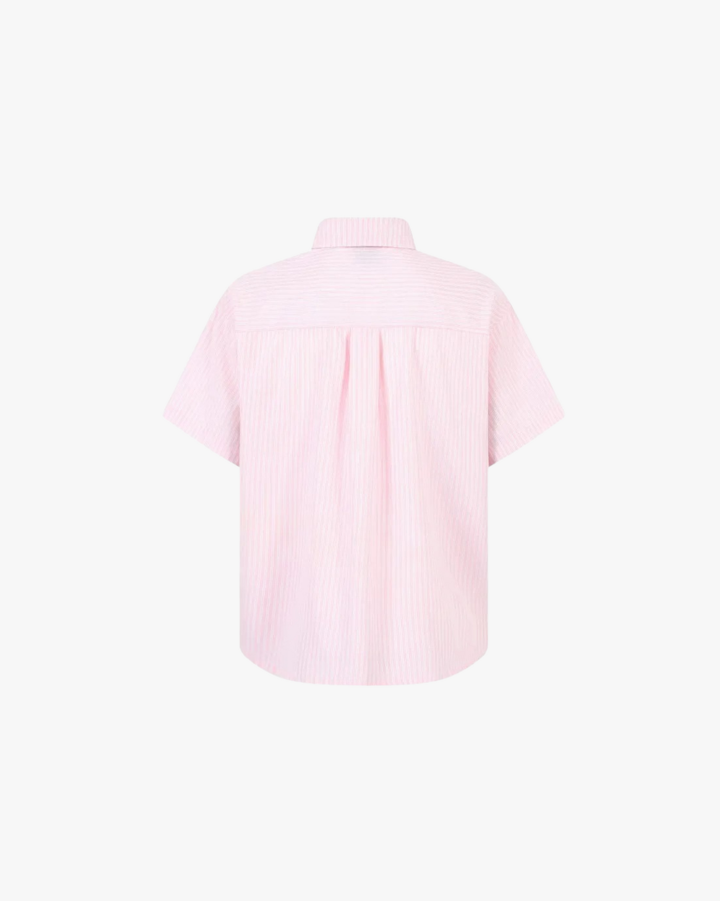 The "Tail Love" shirt reinterprets classic shirting through playful storytelling and vibrant personality. Crafted from a lightweight cotton blend with fine vertical stripes, this short-sleeve button-up features an oversized fit and a dropped shoulder silhouette for relaxed summer comfort.