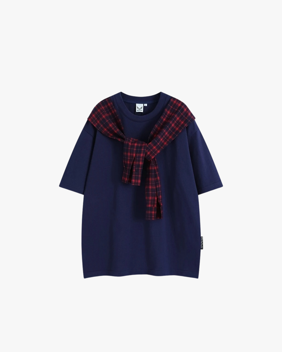 This creative t-shirt from Carnage redefines casual layering with a clever built-in twist. Made from soft, breathable cotton, it features a standard crew neck and the standout detail: a shirt draped over the shoulders and tied in front, fully integrated into the design. This trompe-l'œil effect captures the look of a preppy, laid-back outfit without the need for actual layering.