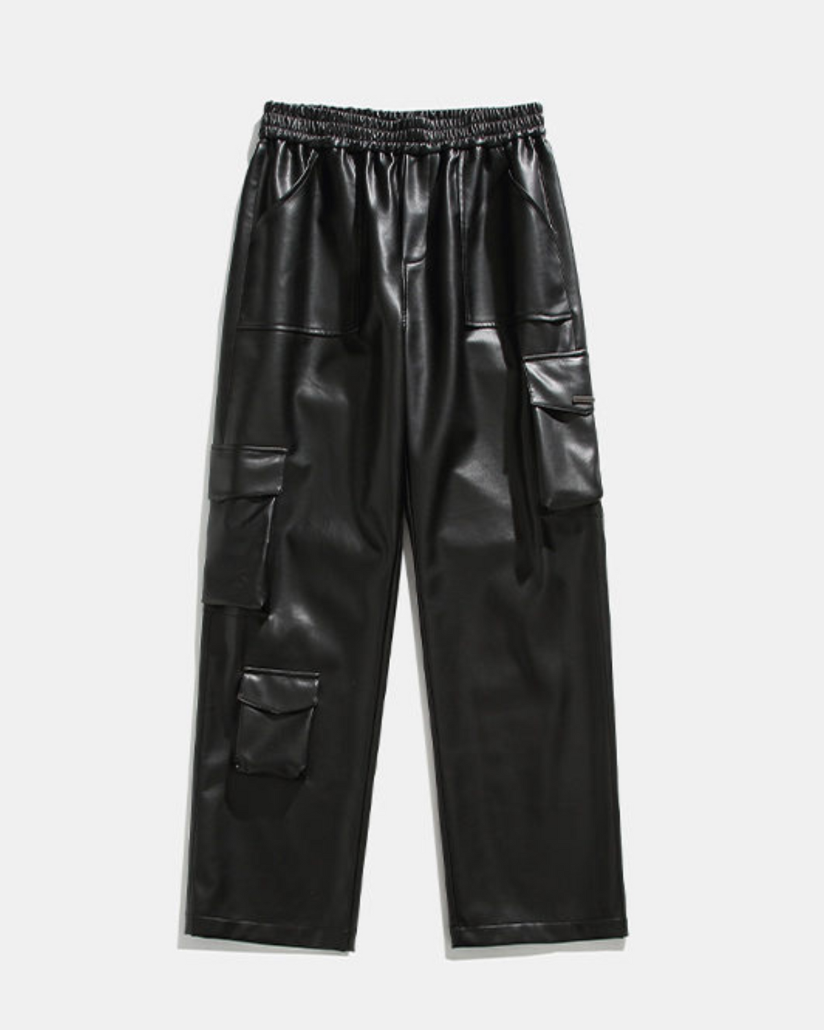 CABASSI's leather cargo pants offer a unique fusion of streetwear and high-end luxury. These wide-leg, leather-made cargo pants are designed with large functional pockets.  The wide fit and smooth leather finish make these pants a staple piece in any wardrobe