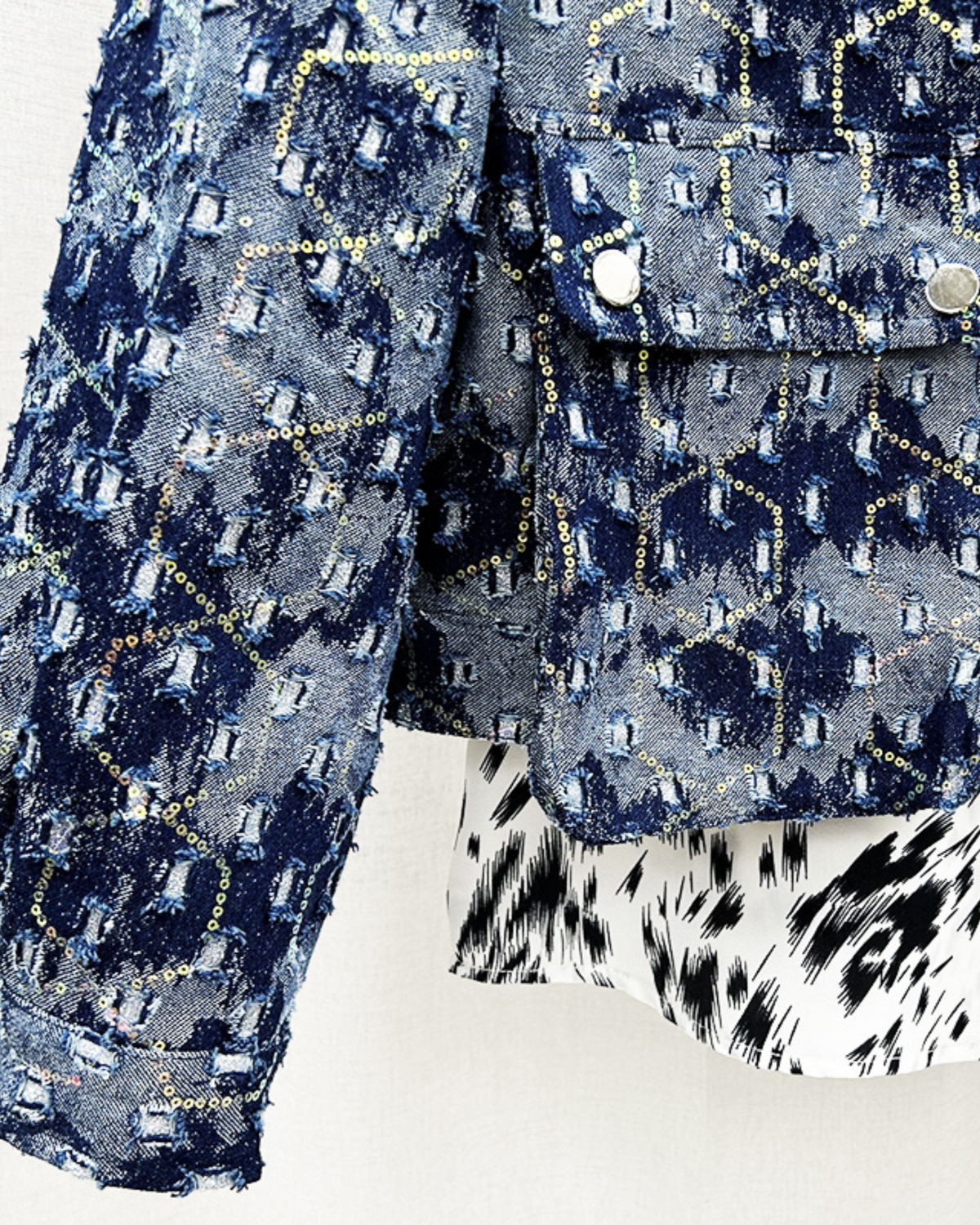 This Contrast Denim Jacket features a spread collar, two button-fastening chest pockets, and two side welt pockets for added functionality. The long sleeves with buttoned cuffs and waist tabs add a touch of style, while the unlined design and front button fastening provide comfort and ease of wear. The jacket also boasts a unique denim effect in blue and multicolour, making it a standout piece in any wardrobe.