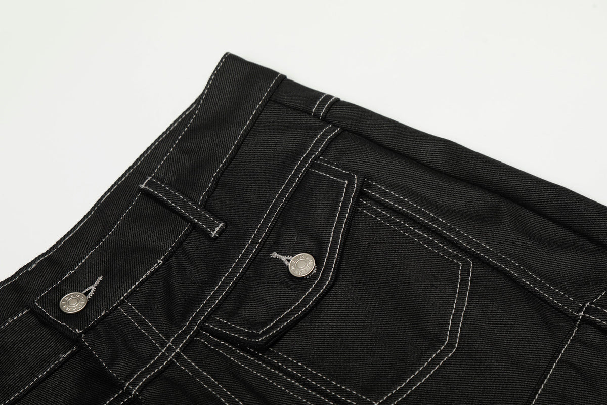 The Omirad Contrast Stitch Wide Denim Pants embody a bold streetwear silhouette with clean architectural lines. Featuring structured panel construction and contrasting white stitching, these pants highlight Omirad’s balance between utilitarian design and effortless high-street expression.