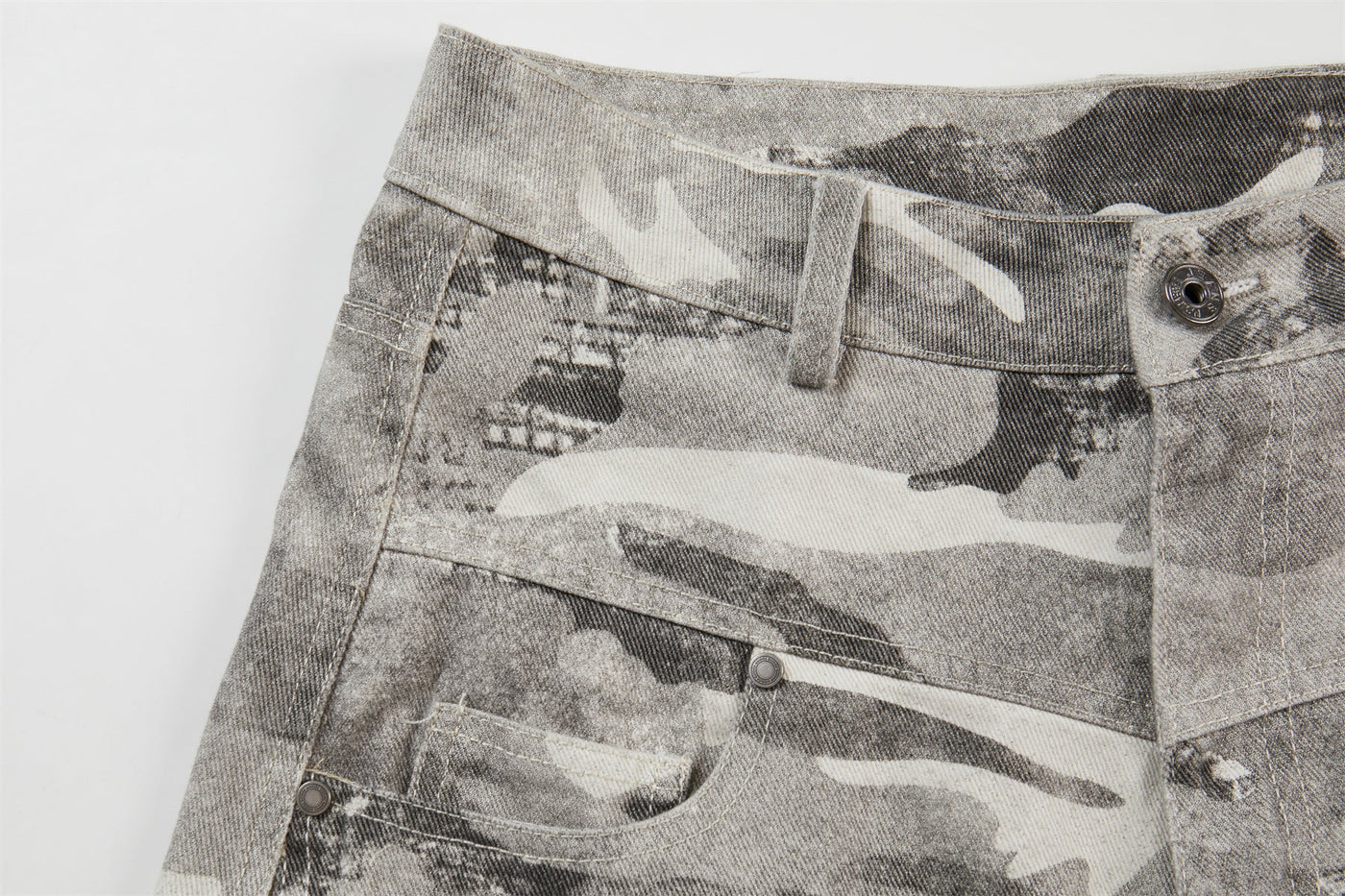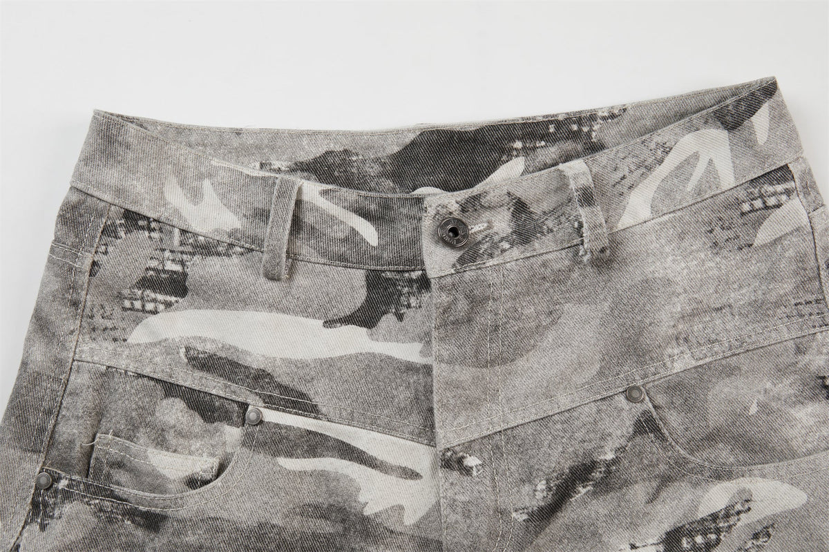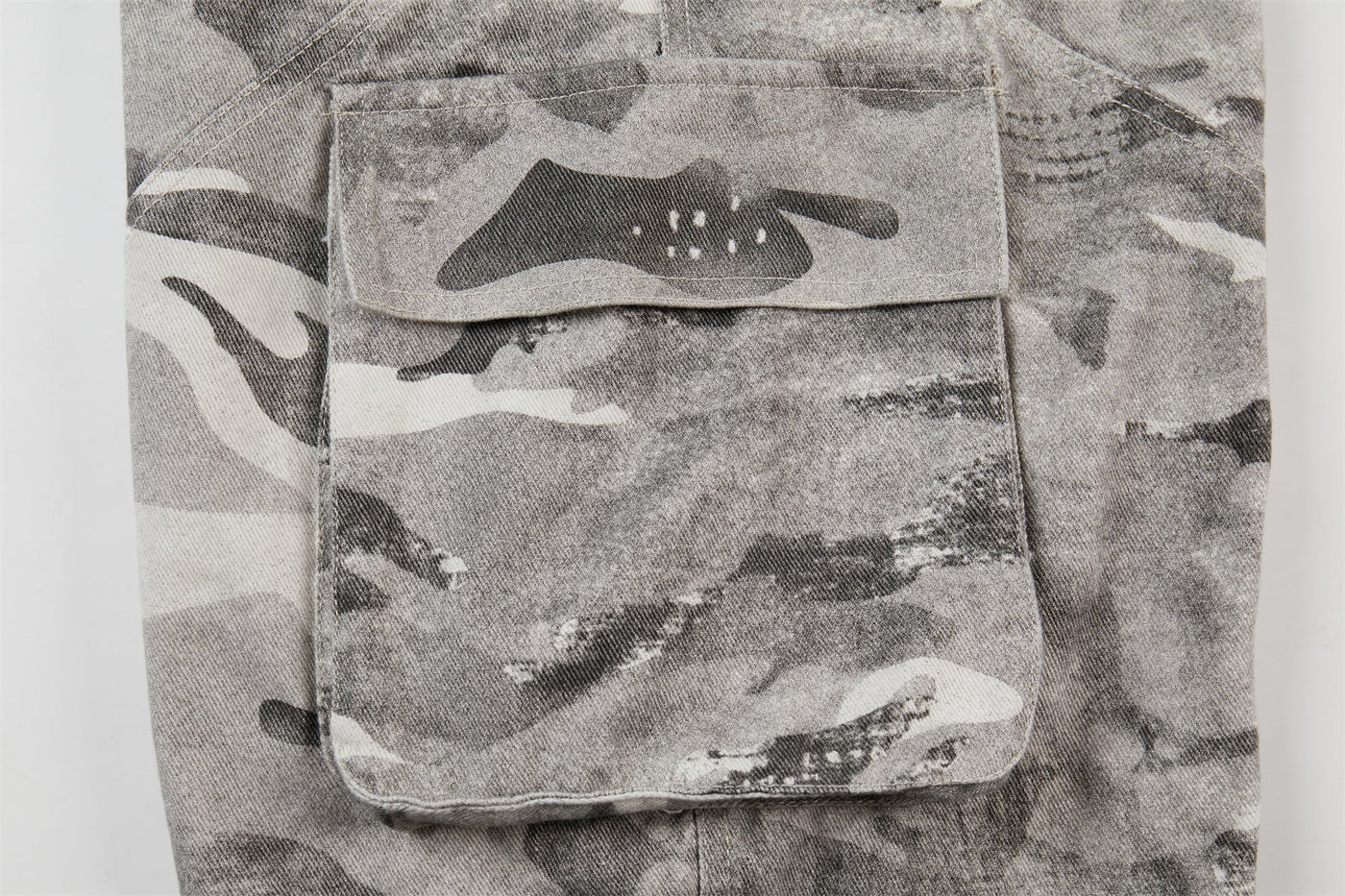 Clothing details: Camouflage pattern, panelled construction, wide-leg fit, cargo pocket detailing