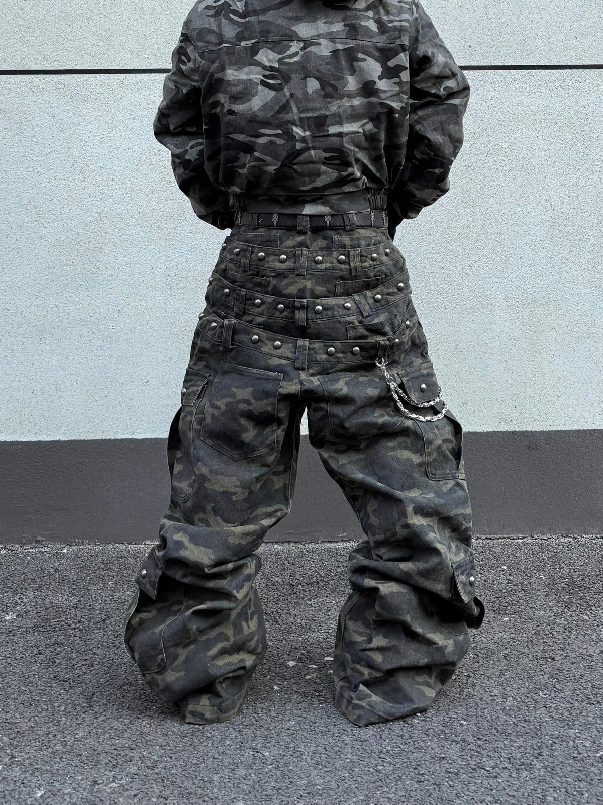The Omirad Camo Wide-Leg Cargo Pants deliver a bold utilitarian look with a relaxed streetwear silhouette. Crafted with an all-over camouflage pattern, these pants feature multiple functional cargo pockets that add depth and practicality to the design. The wide-leg cut enhances movement and attitude, making them a statement piece for everyday street styling.