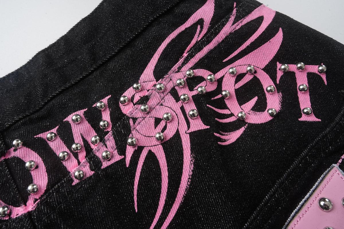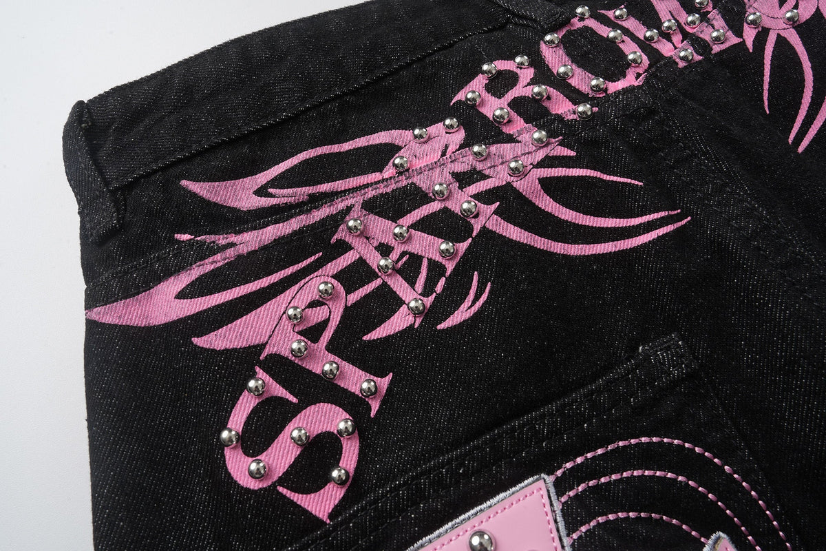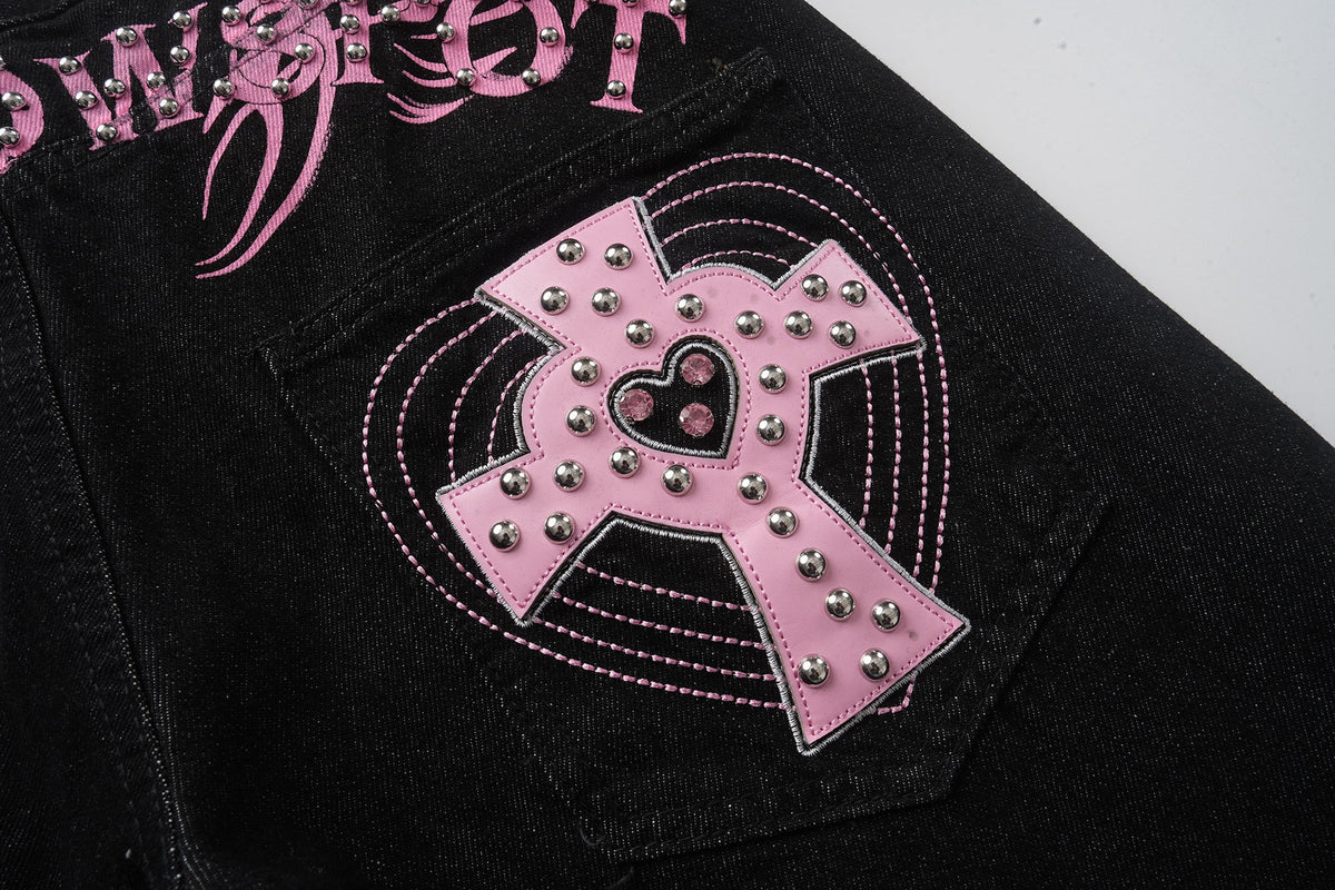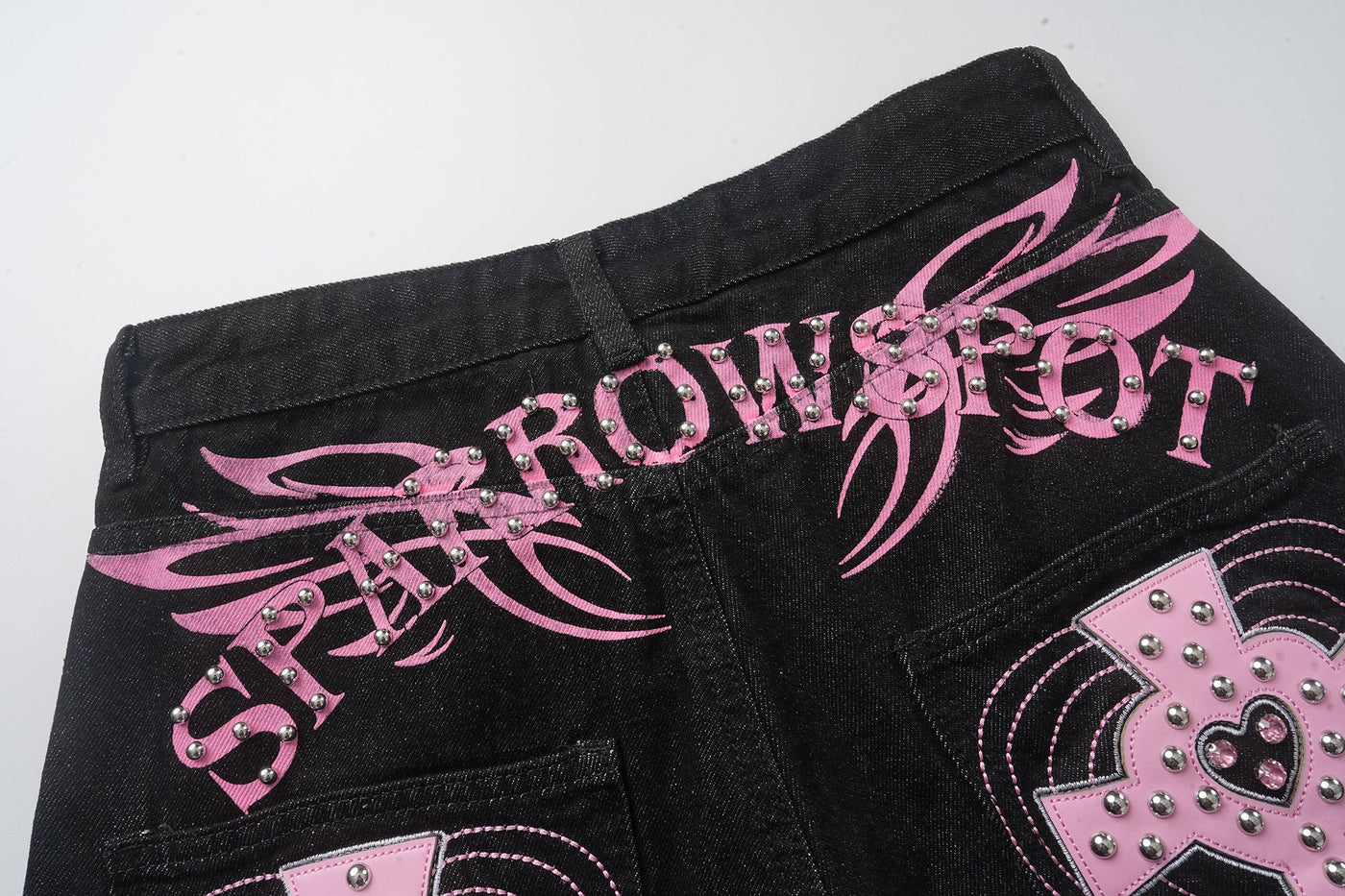 The Omirad Cross Pocket Graphic Wide-Leg Jeans feature bold cross-shaped back pocket graphics with contrast detailing that bring a rebellious edge to a clean, wide-leg silhouette. Designed to elevate everyday streetwear, these jeans balance statement design with relaxed structure for effortless styling.