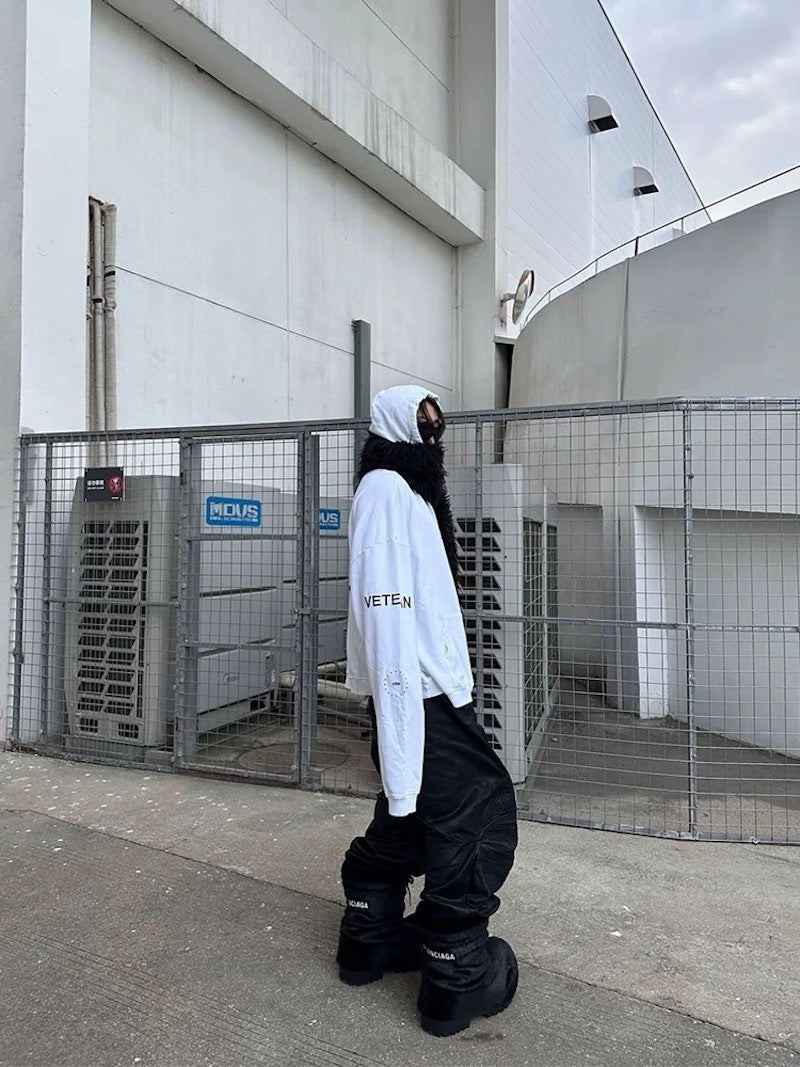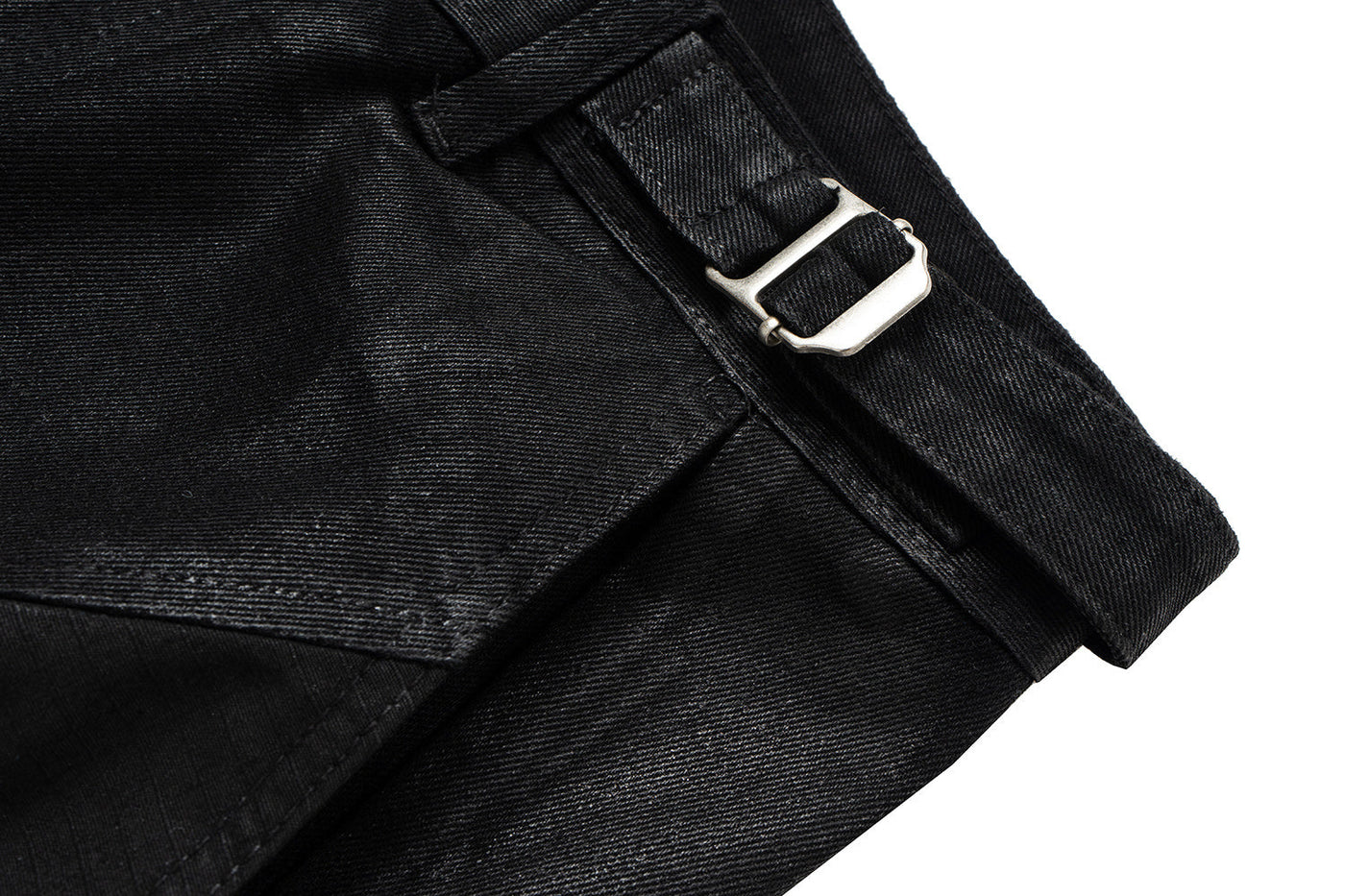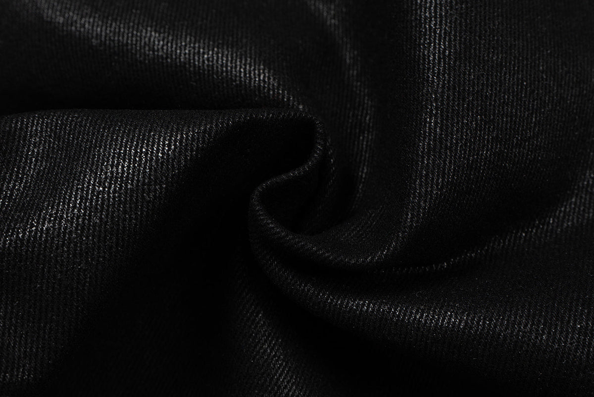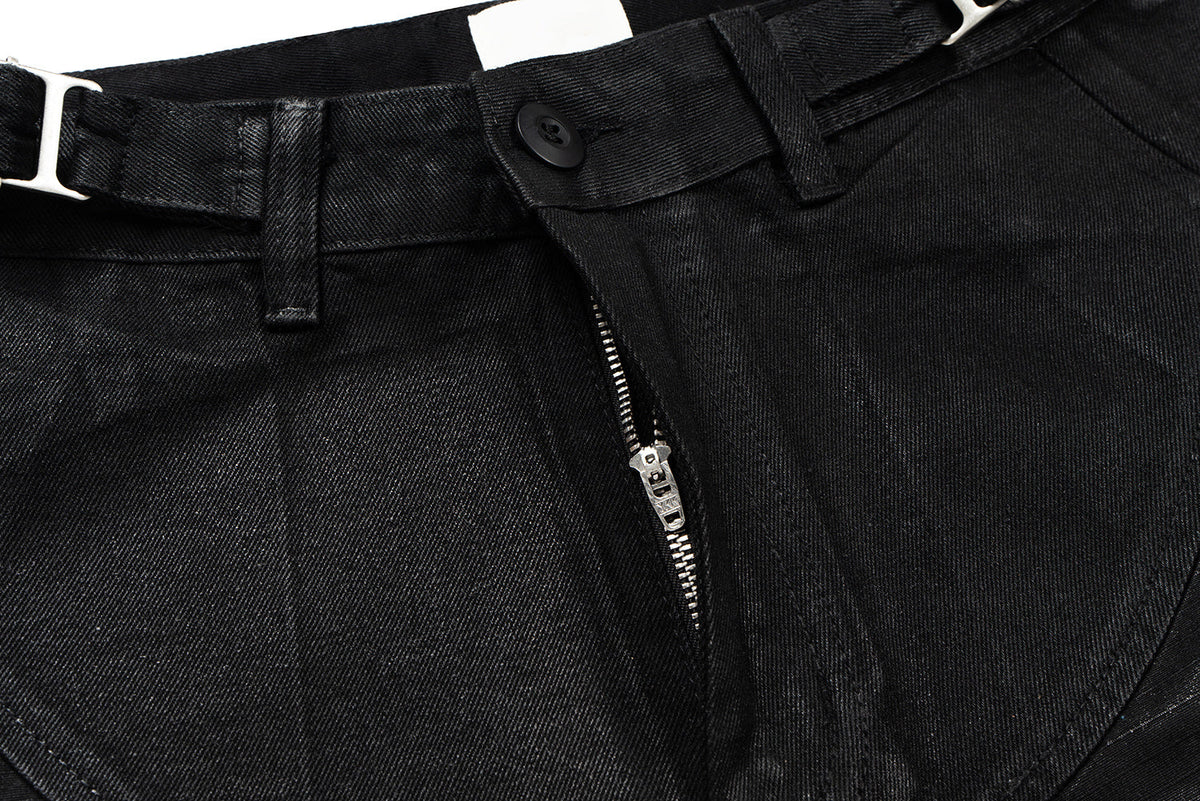 The Omirad Curved-Stitch Leather Denim Pants blend bold streetwear design with a structured denim foundation. Made from 100% cotton with a special leather-effect finish, these pants feature signature curved seam lines that contour the leg and create a dimensional shape. Metal belt adjusters on the waist add a utility edge, while the stacked leg opening enhances the modern oversized silhouette.