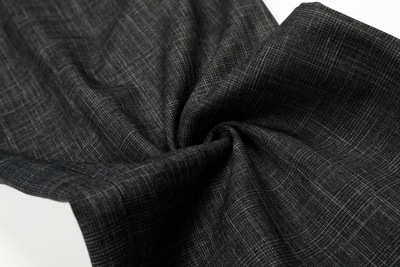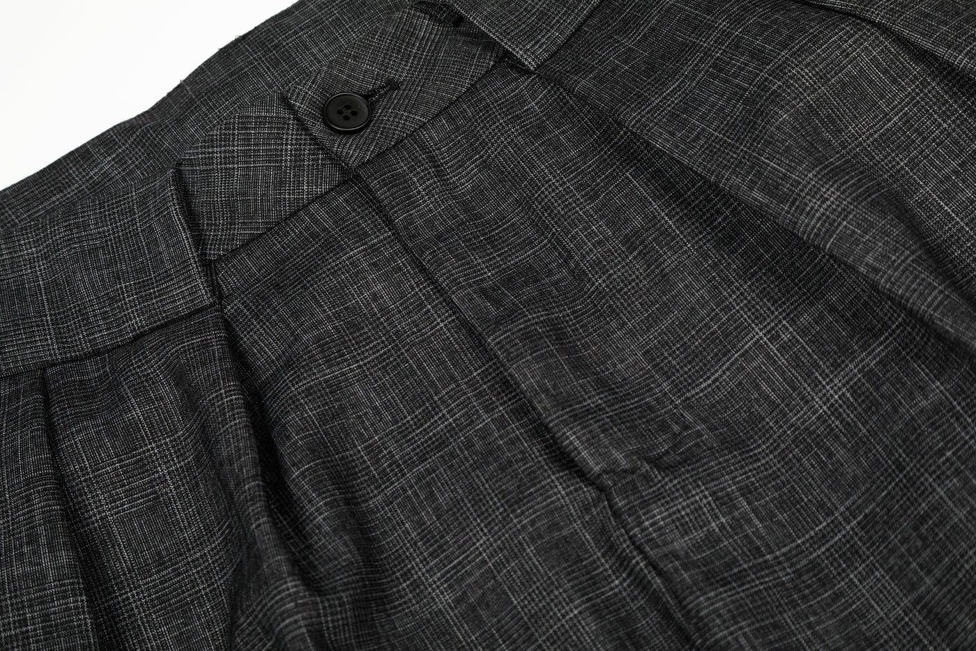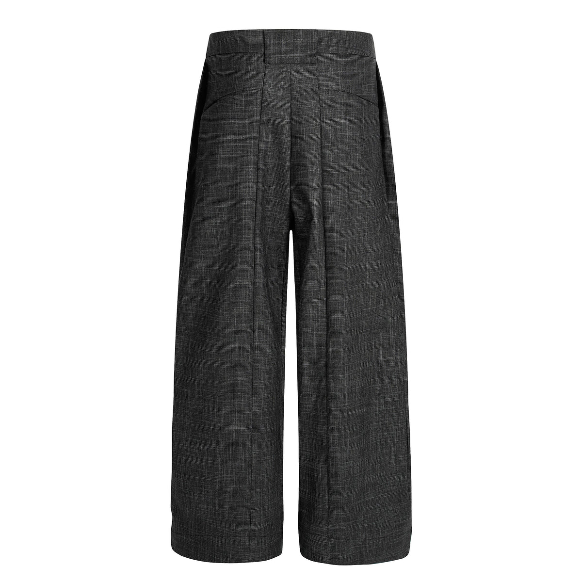 Clothing details: Subtle woven texture, front pleats, wide-leg silhouette, minimalist tailored design