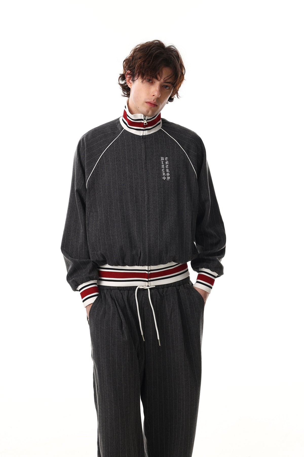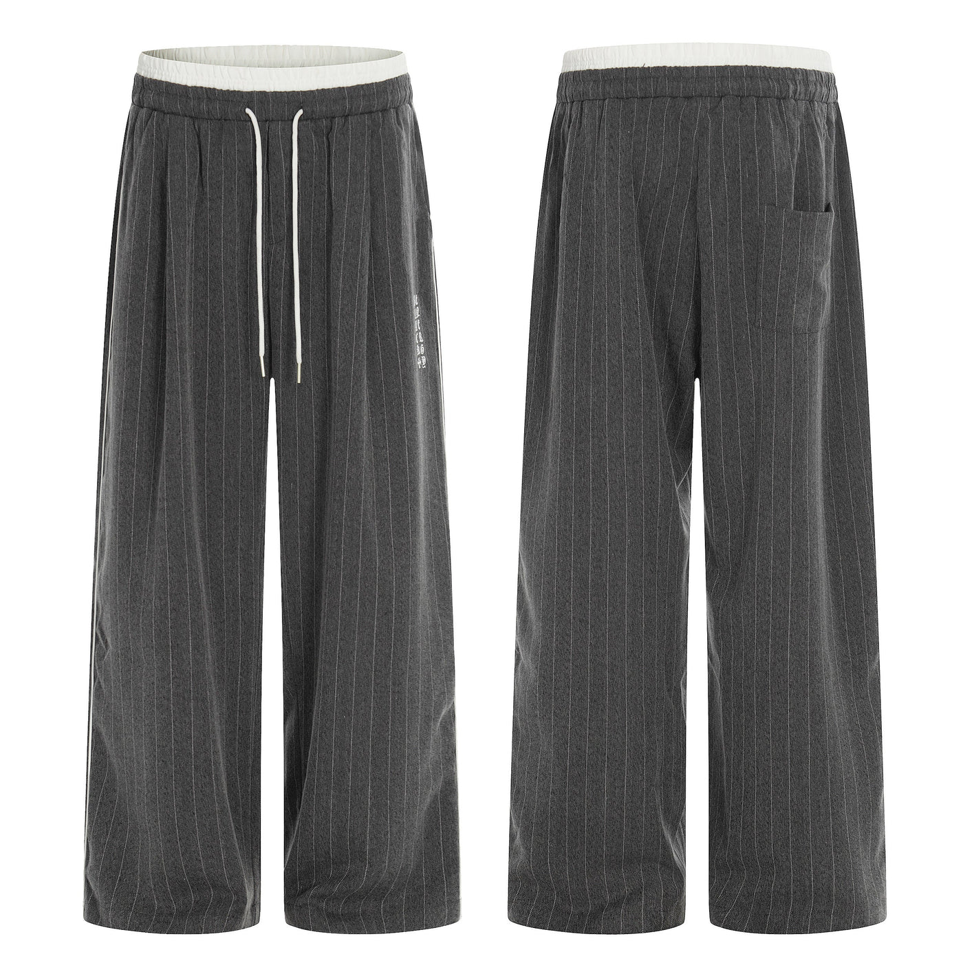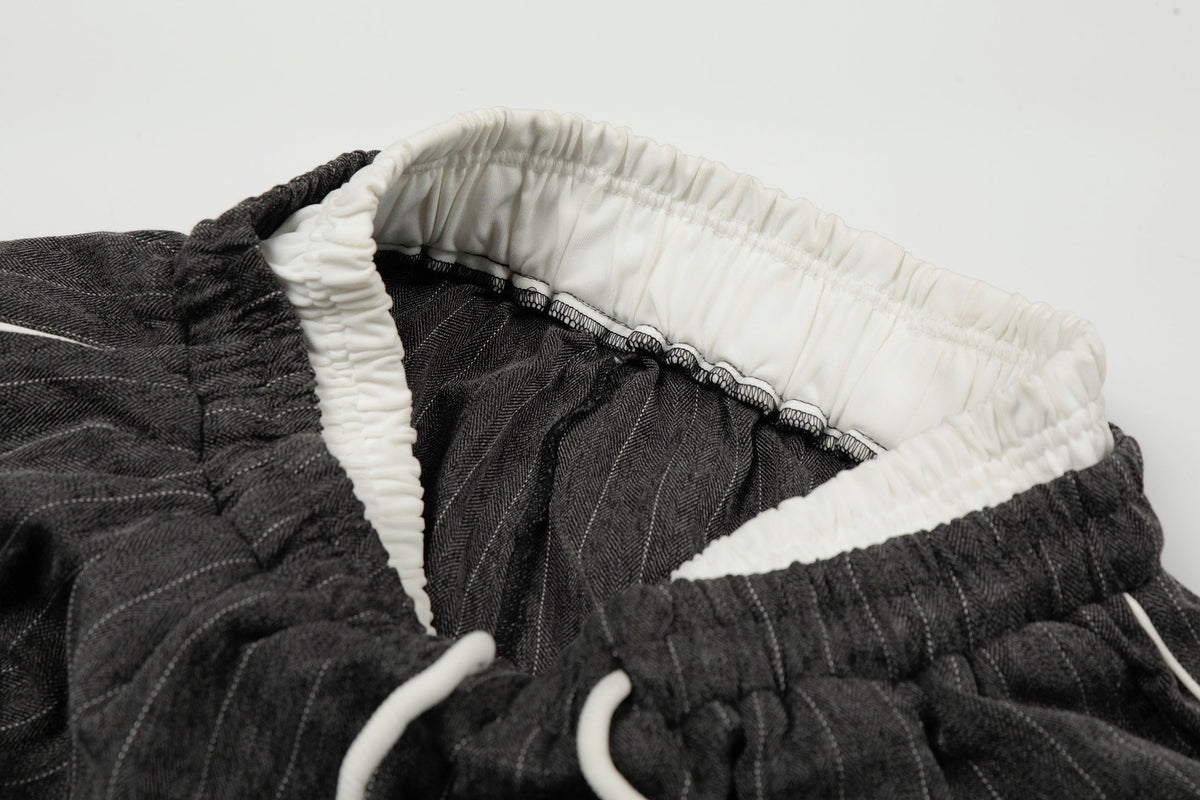 The Omirad Pinstripe Wide-Leg Track Pants fuse tailored pinstripe aesthetics with relaxed streetwear comfort. Designed with a soft elastic waistband and adjustable drawstring, these pants feature a clean vertical pinstripe pattern that elongates the silhouette while maintaining an effortless, laid-back fit. Finished with a wide-leg cut, they deliver a modern balance of structure and ease for everyday styling.