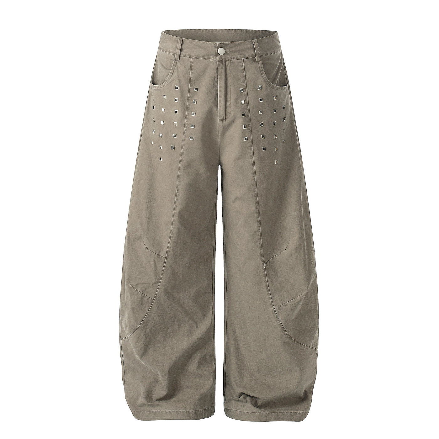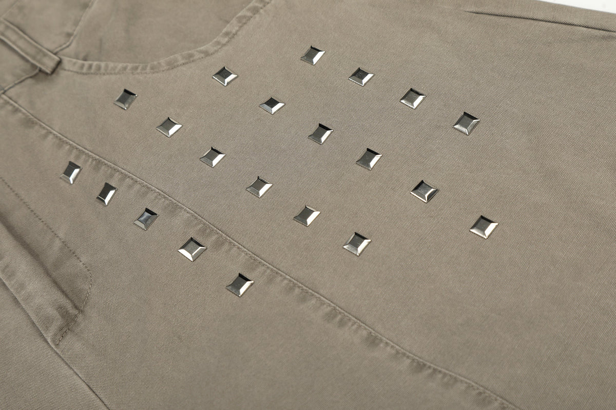 The Omirad Stud Detail Wide-Leg Pants feature a clean, structured silhouette accented with subtle stud embellishments for a modern workwear-inspired look. Crafted from durable cotton fabric, these pants combine a relaxed wide-leg fit with refined detailing, offering both comfort and visual depth. The minimalist design makes them easy to style while still standing out in everyday streetwear rotation.