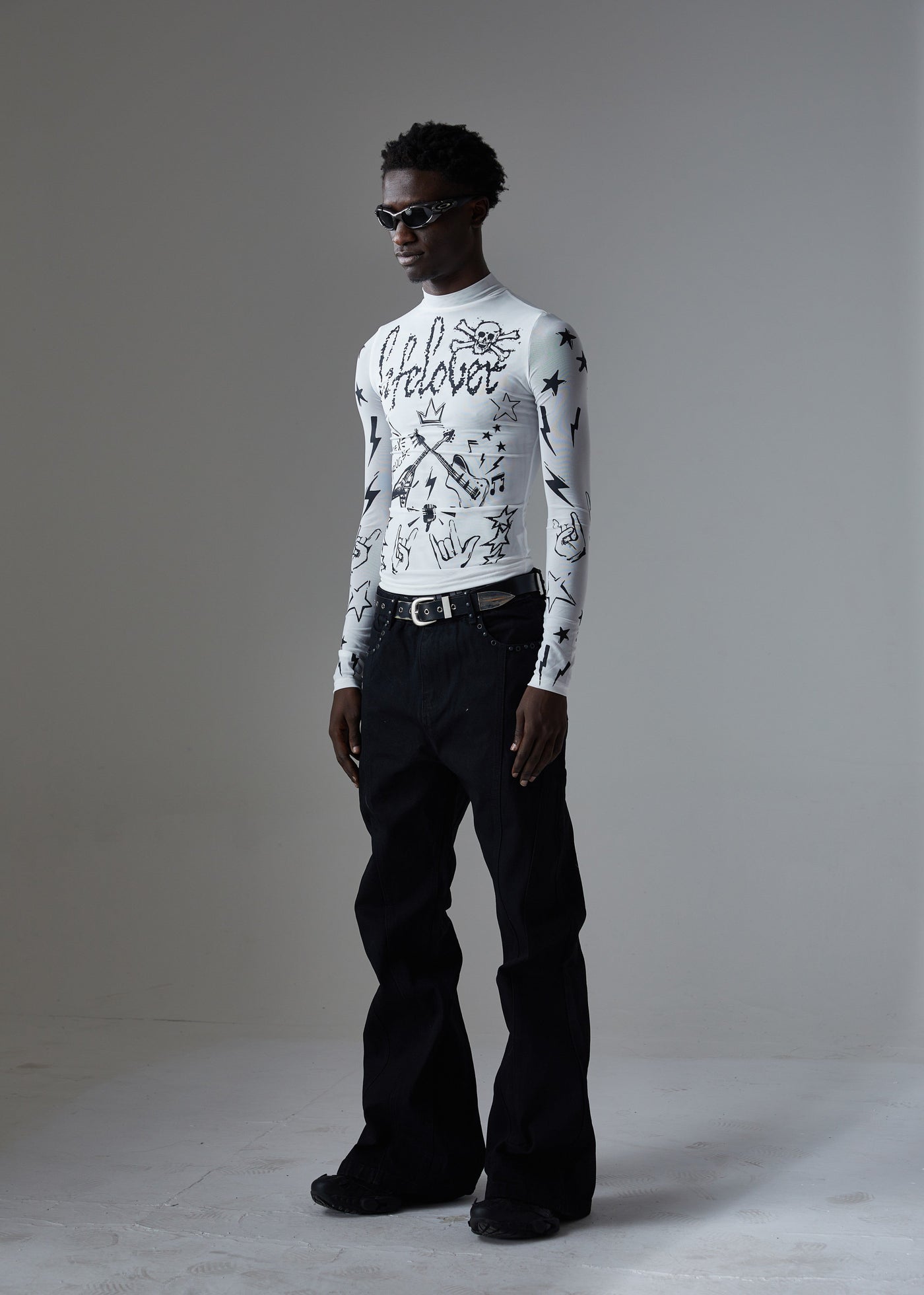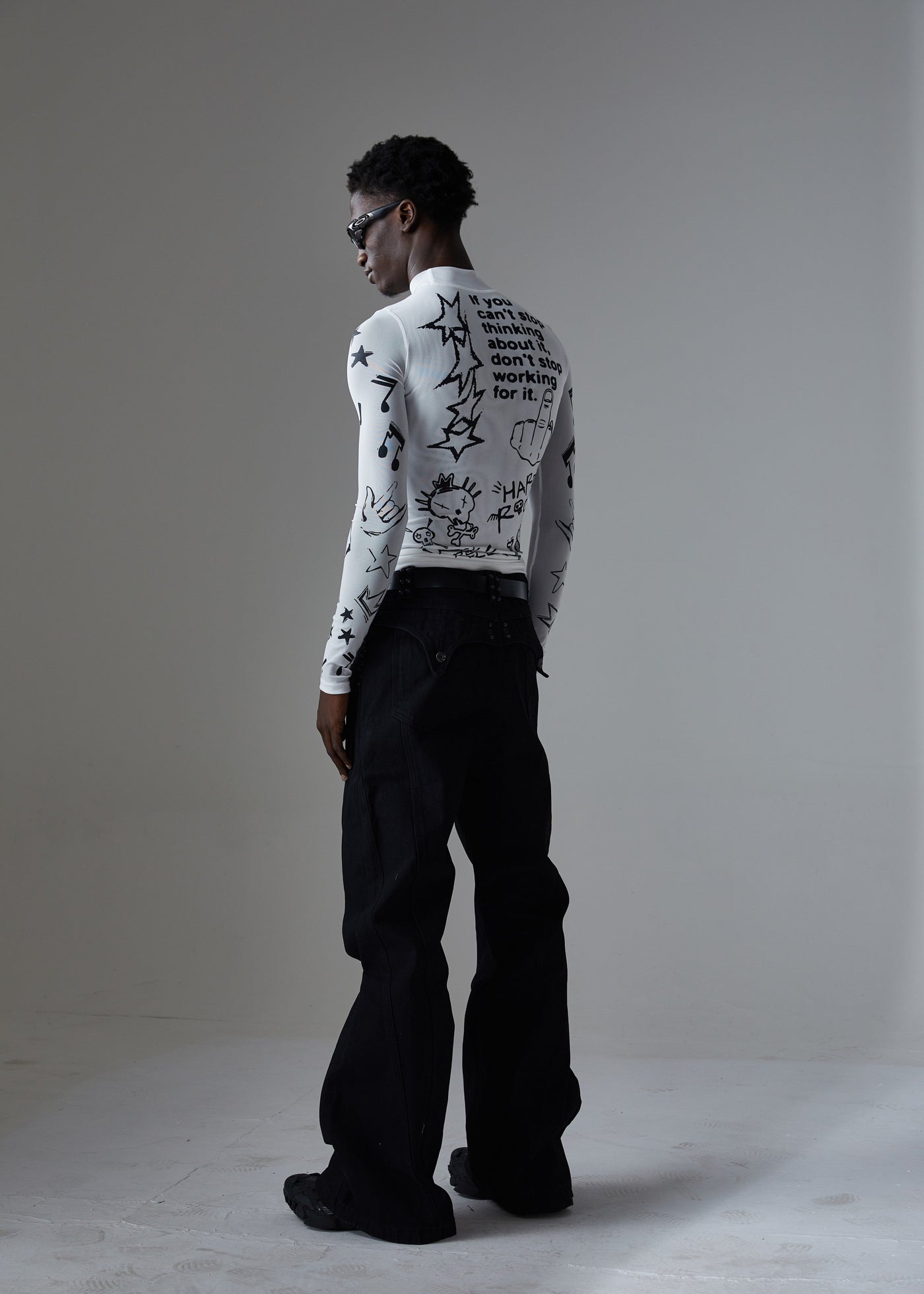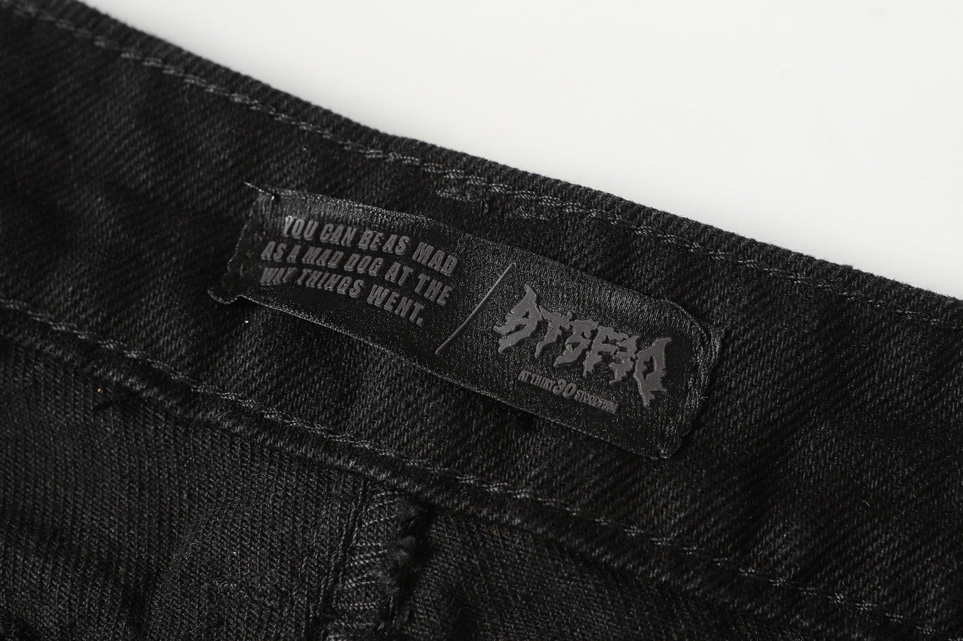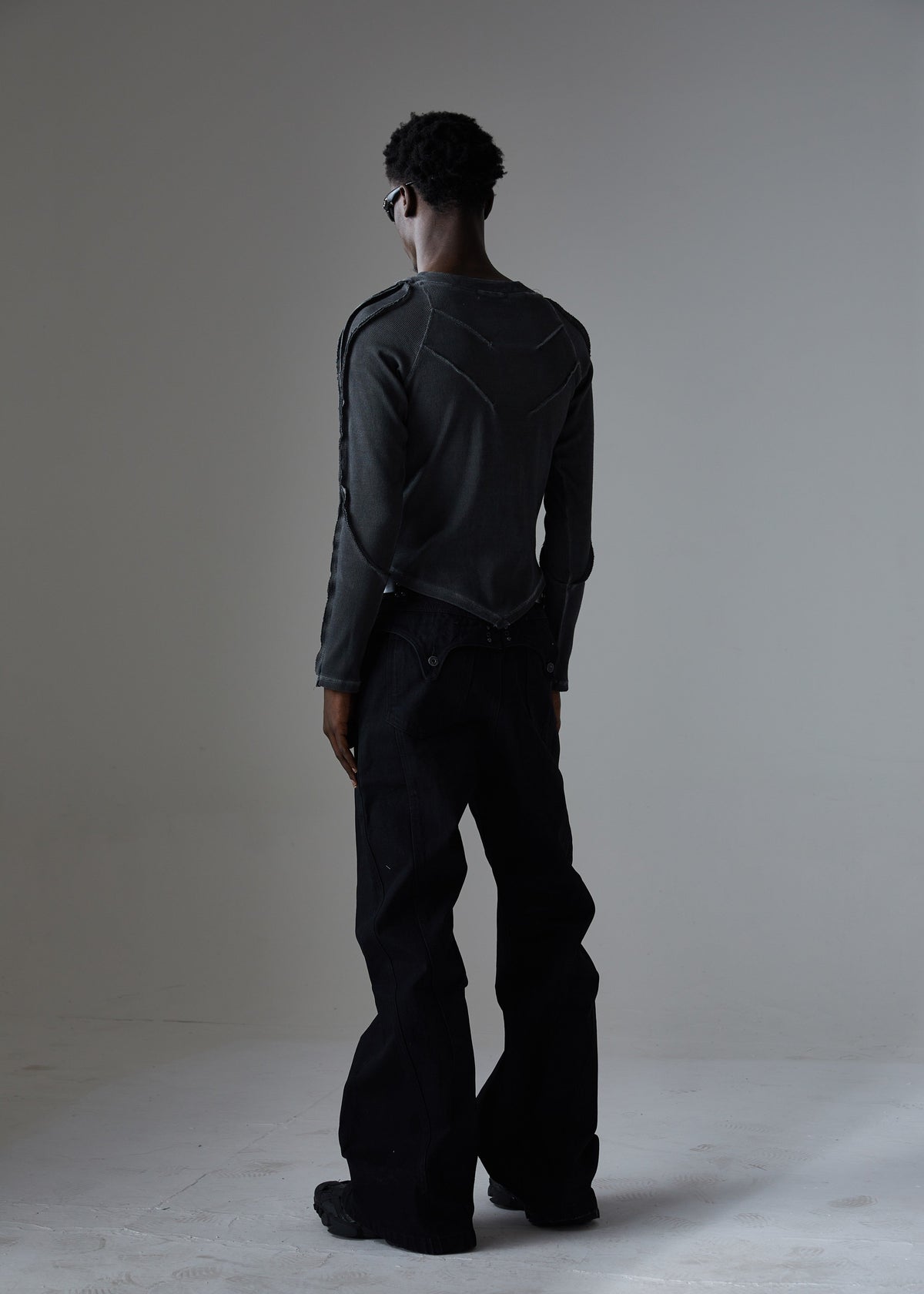 The Omirad Studded Panel Wide-Leg Jeans channel a dark, industrial streetwear aesthetic with subtle metal rivet detailing and sculpted seam panels. The exaggerated wide-leg silhouette and washed black finish give these jeans a heavy drape and underground attitude—made to stand out with minimal styling.