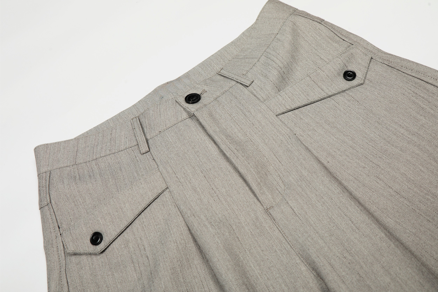 Clothing details: Wide-leg tailored silhouette, structured waistband with button closure, subtle stretch for comfort, smooth drape finish, clean panel construction, balanced fit for everyday and smart-casual wear.