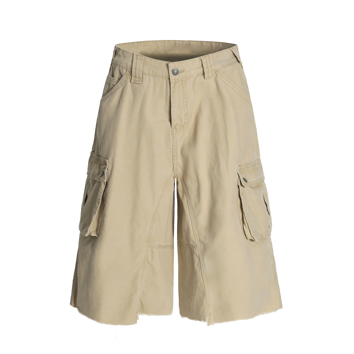 The Omirad Wide-Leg Cargo Shorts bring a rugged utility vibe to a modern streetwear silhouette. Crafted from 100% cotton, they offer a sturdy yet breathable feel with a naturally soft texture. The exaggerated wide-leg cut adds volume and movement, while the oversized side cargo pockets deliver strong visual impact and daily practicality. Raw-cut hems and panel seam details enhance the vintage-workwear aesthetic, making these shorts a standout piece for bold summer fits.