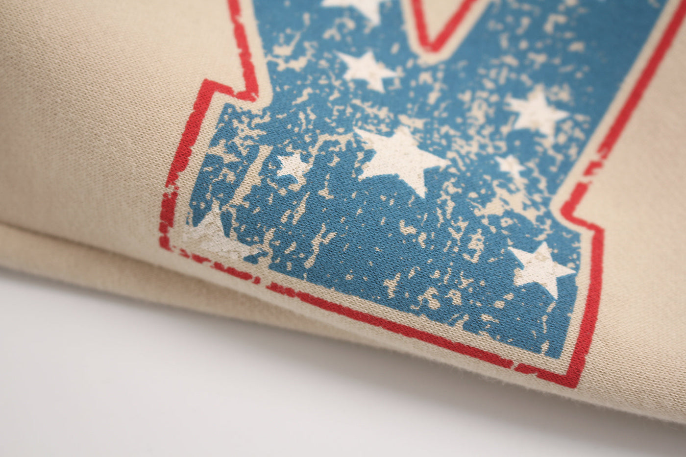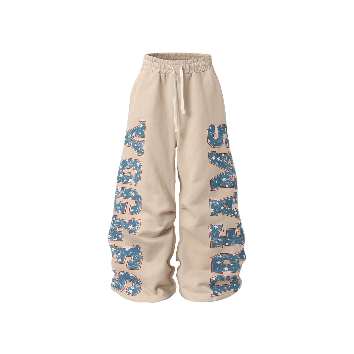 Clothing details: Fleece lining, distressed letter and star print, wide-leg fit, adjustable drawstring hem, elastic waistband