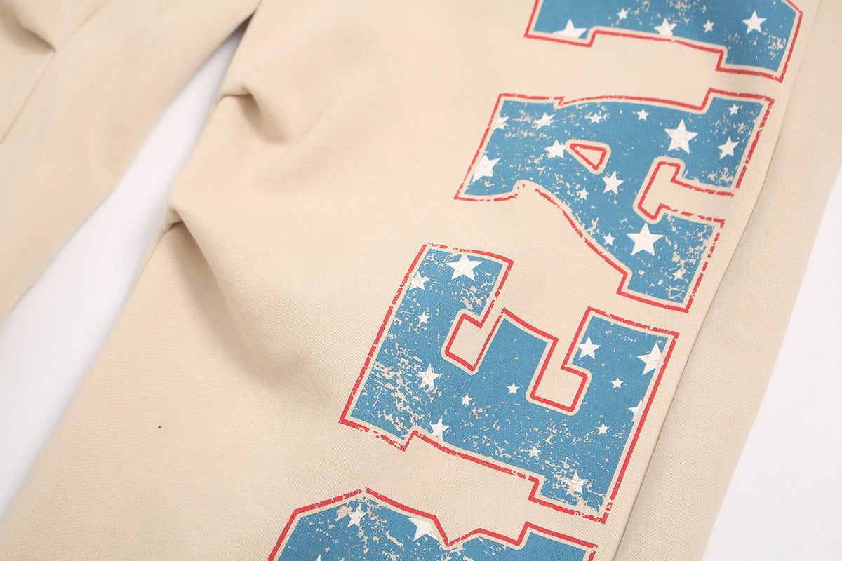 The Omirad Fleece-Lined Retro Letter Wide-Leg Sweatpants blend vintage Americana aesthetics with cozy streetwear comfort. Designed with oversized block lettering and distressed star-filled graphics, this piece brings a nostalgic sports energy to your look. The fleece lining ensures warmth and softness, while the adjustable drawstring hem lets you customize the silhouette. Perfect for styling relaxed street fits through the colder seasons.