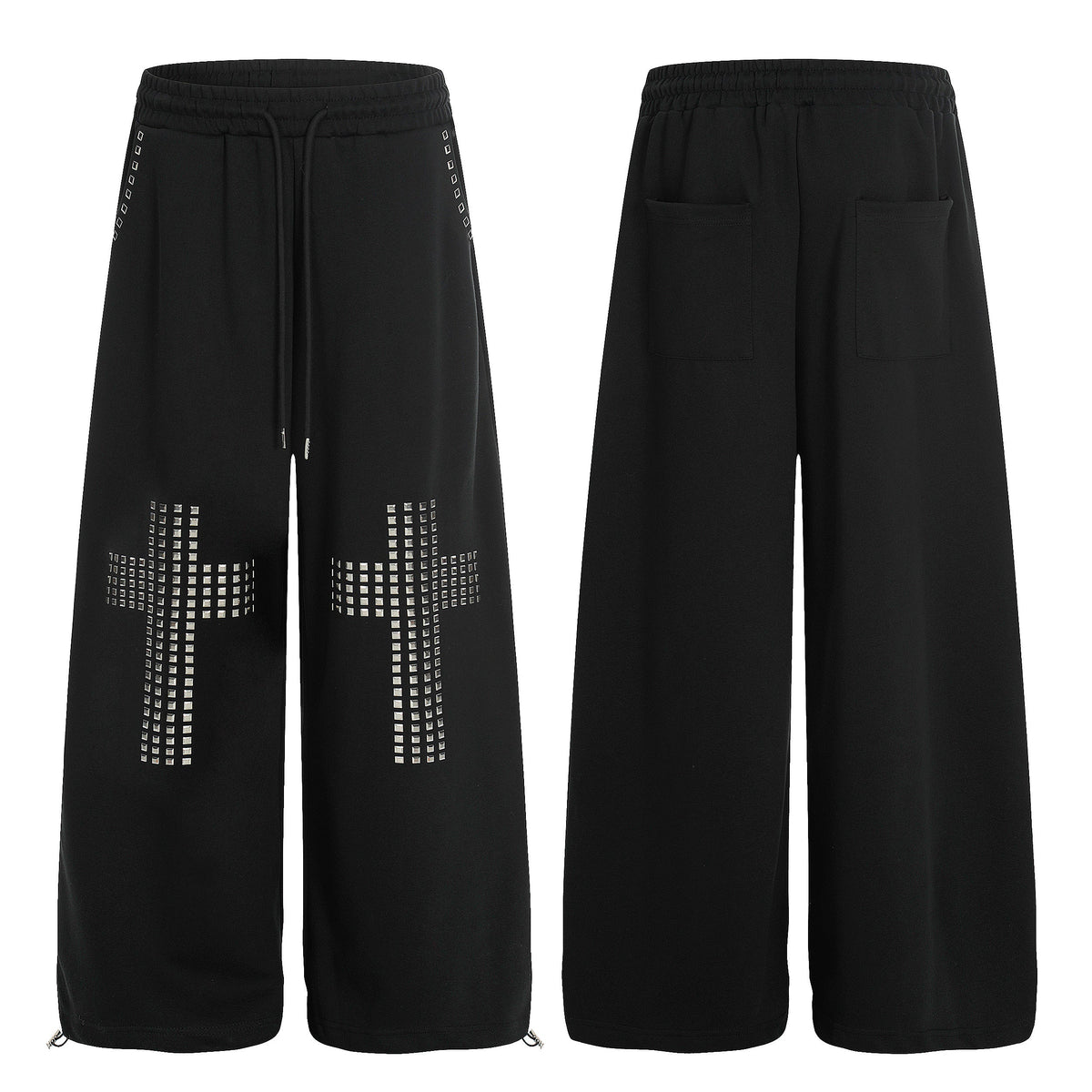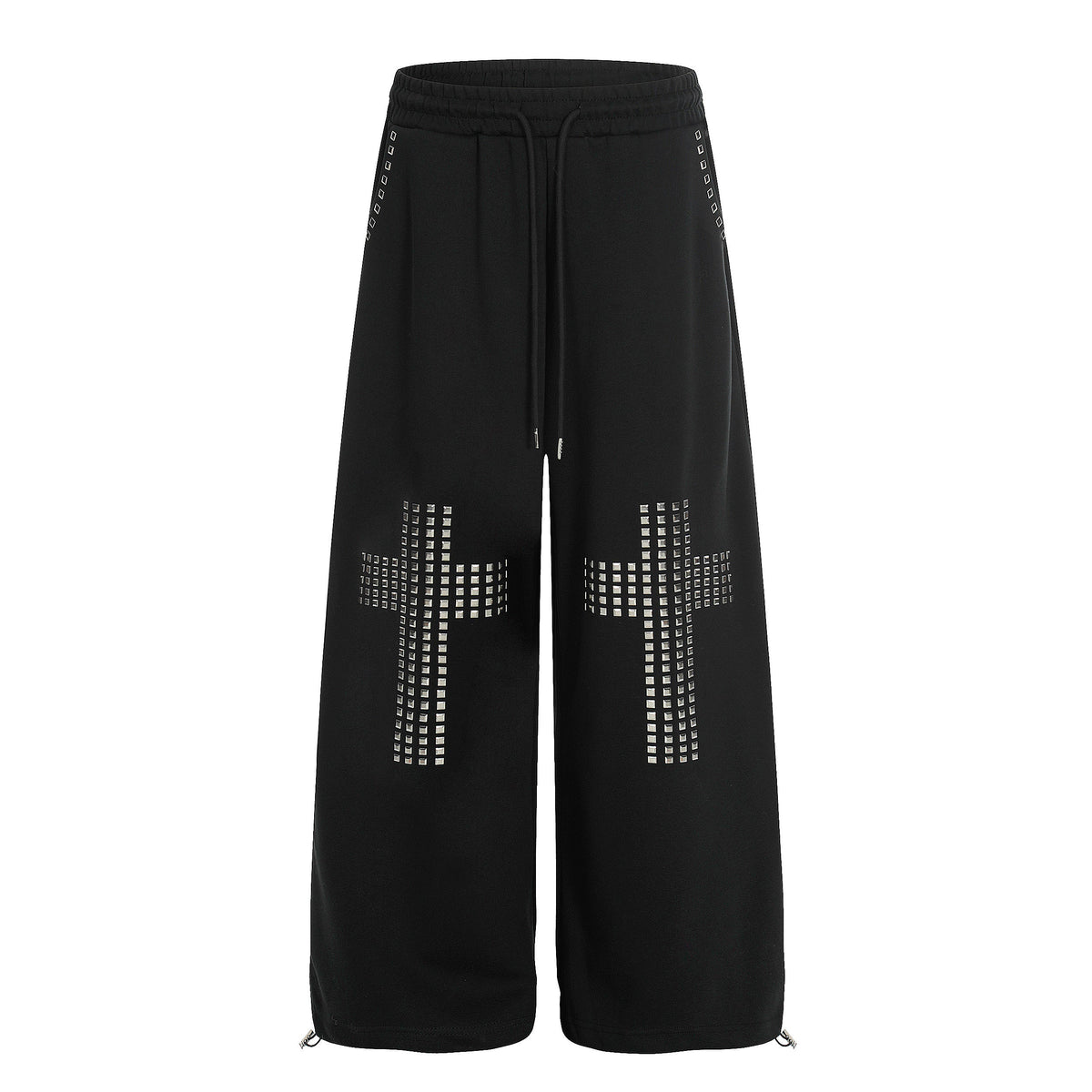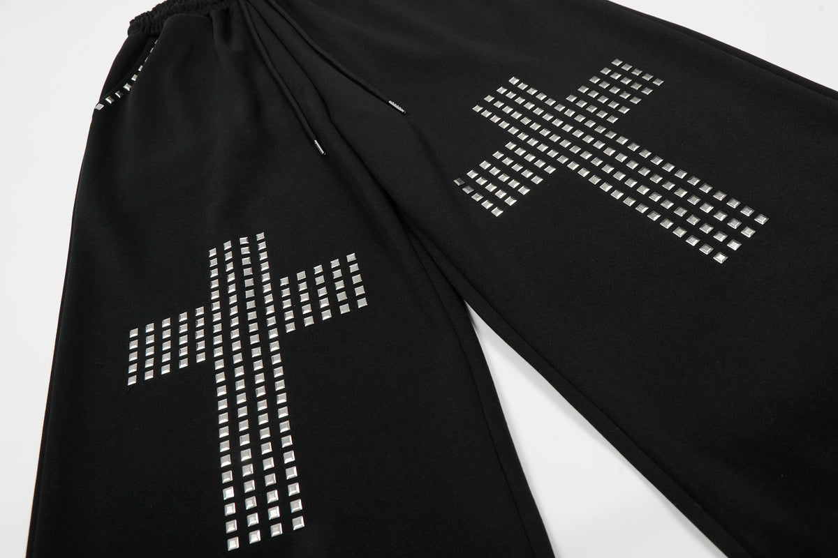 3-6-5.shop Studded Cross Wide-Leg Sweatpants