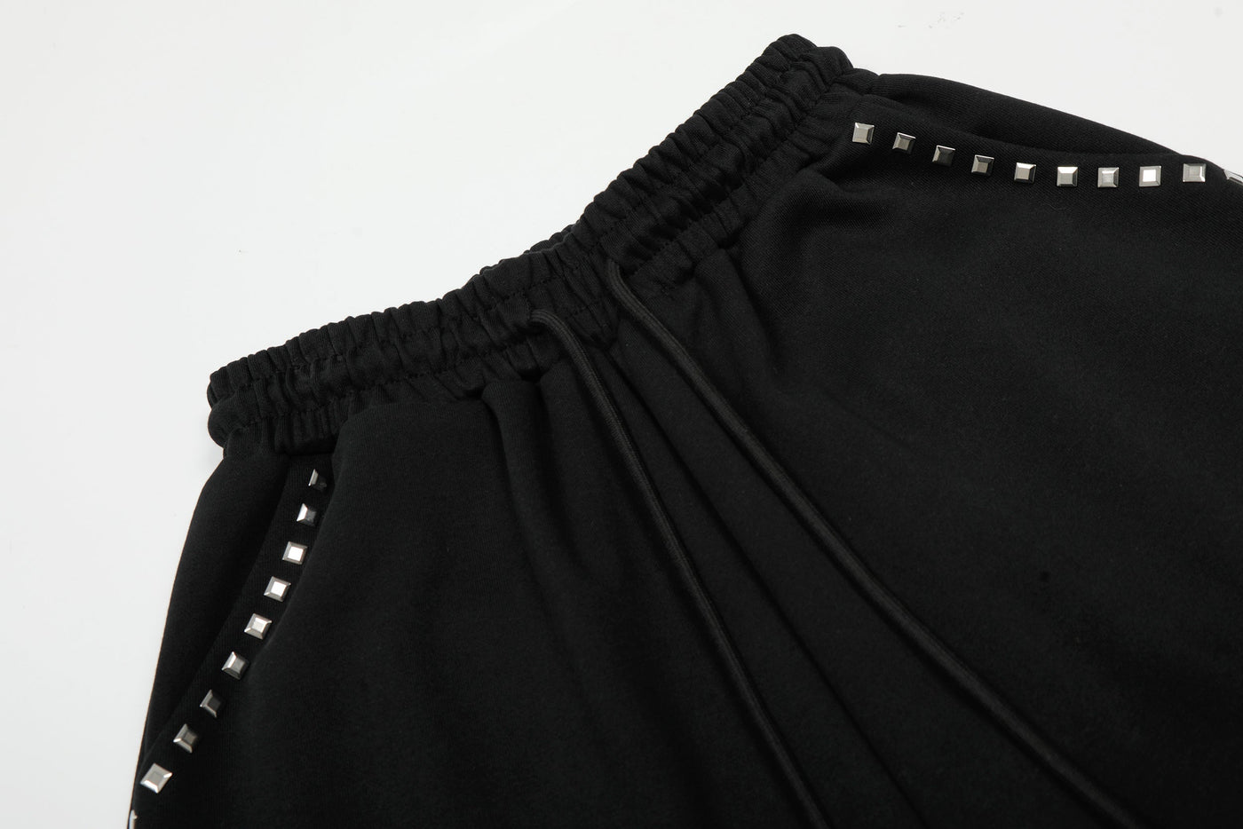 The Omirad Studded Cross Wide-Leg Sweatpants feature bold cross-shaped stud detailing that brings a strong visual statement to a clean, wide-leg silhouette. Crafted from a cotton-rich athletic blend, these sweatpants offer a soft hand feel with flexible comfort for all-day wear. The elastic waistband with drawstring ensures an easy fit, while the relaxed cut makes them ideal for elevated street and Y2K-inspired styling.