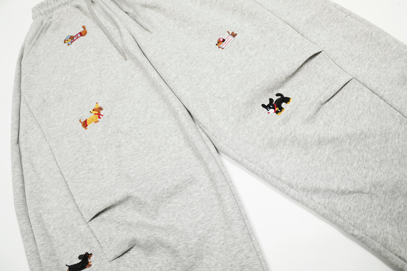 3-6-5.shop Embroidered Dog Motif Sweatpants – 365 Showroom index