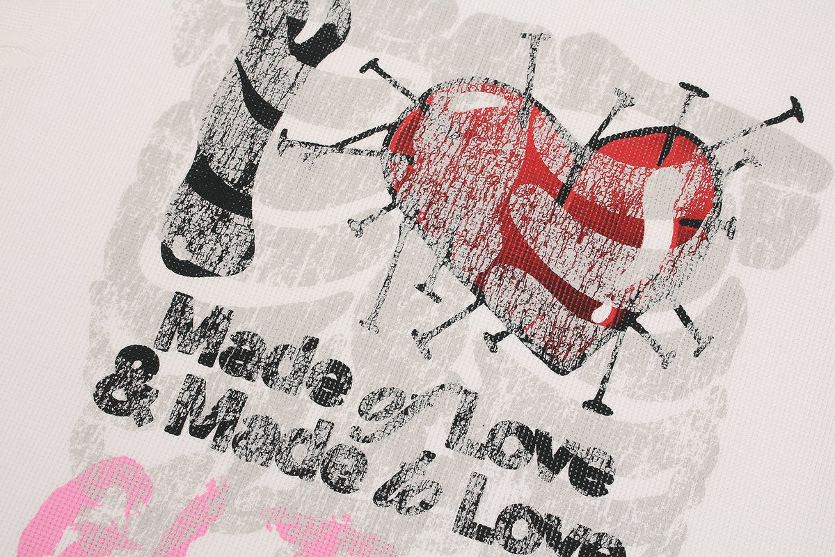 The Omirad Made of Love Graphic Tee features a distressed heart-and-nails graphic layered with bold typography for an expressive, emotional streetwear statement. Designed to elevate everyday outfits, this tee blends raw visual impact with a relaxed, wearable silhouette that stands out without trying too hard.
