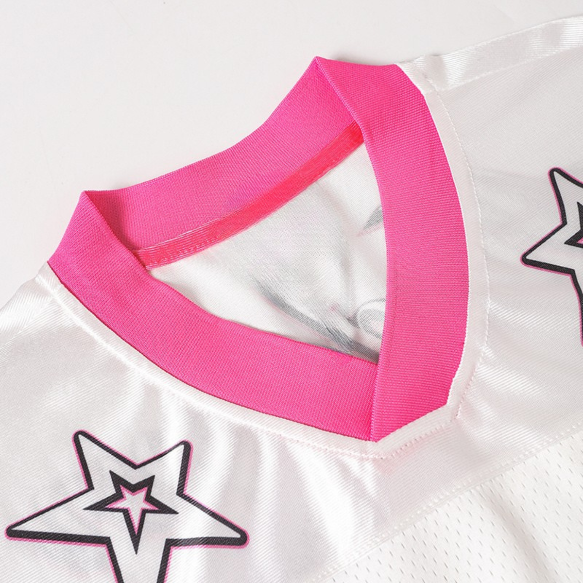 Clothing details: Stylized “25” number print, star shoulder detailing, contrast pink sleeve stripes, breathable mesh construction, classic football jersey silhouette, lightweight stretch feel, relaxed athletic fit