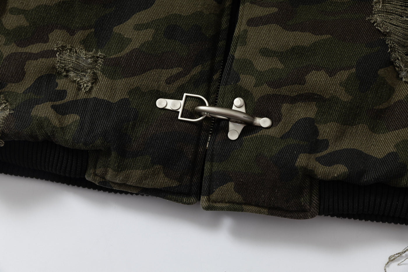 3-6-5.shop Camo Hook Detail Distressed Jacket