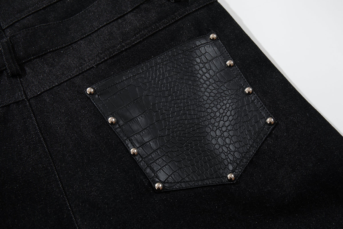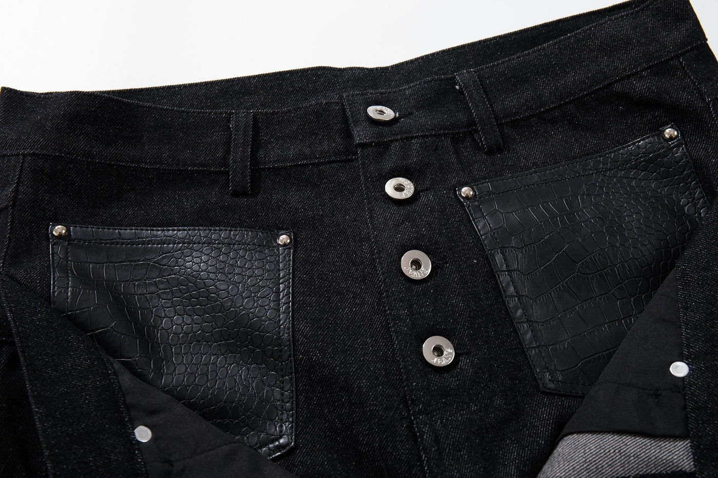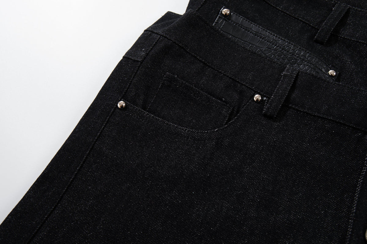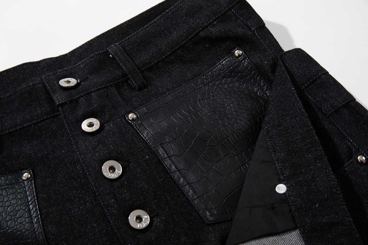 The Omirad Wide Leg Button Fly Denim Pants feature a bold, structured silhouette with a high-rise waist and extended wide-leg cut. Designed with a button fly front and reinforced panel detailing, these pants combine utilitarian elements with a strong streetwear profile. The contrast pocket accents add subtle texture while maintaining a clean overall look.