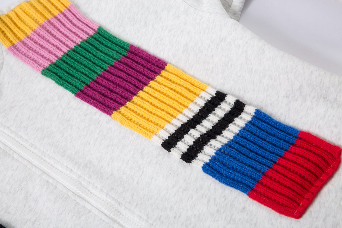 The Omirad Color-Block Scarf Hooded Zip Jacket fuses cozy minimalism with playful streetwear flair. Designed with a detachable multicolor ribbed scarf, this piece adds a vibrant contrast to its clean silhouette. The soft cotton-poly blend provides warmth and structure, while the adjustable hem and full-zip closure make it easy to style across seasons.