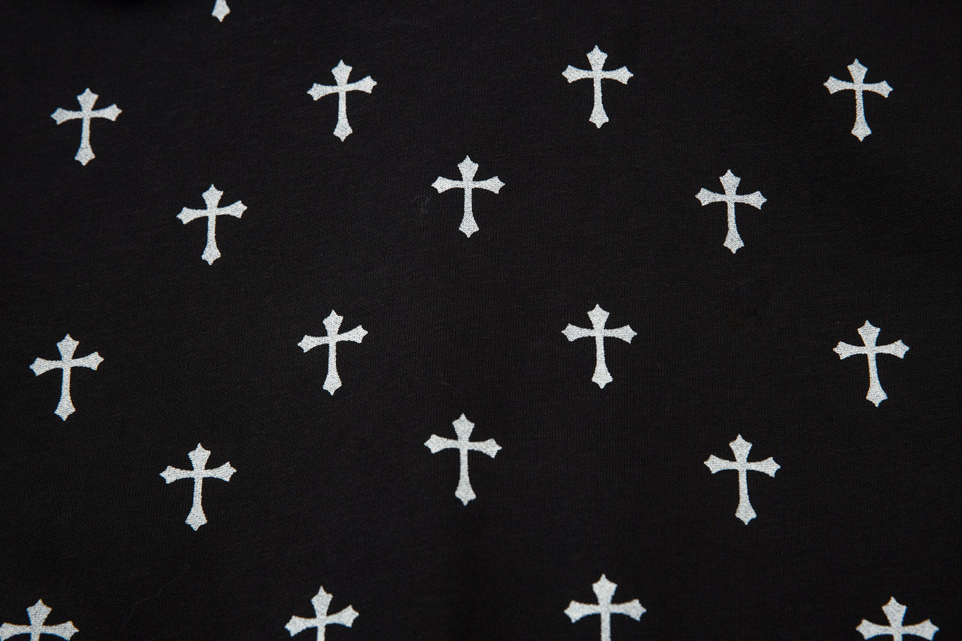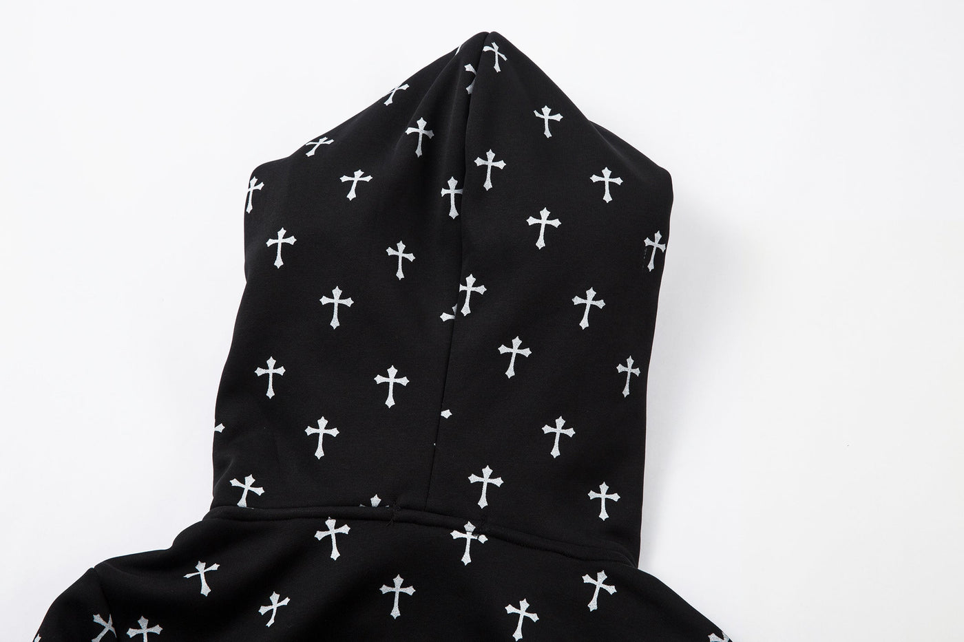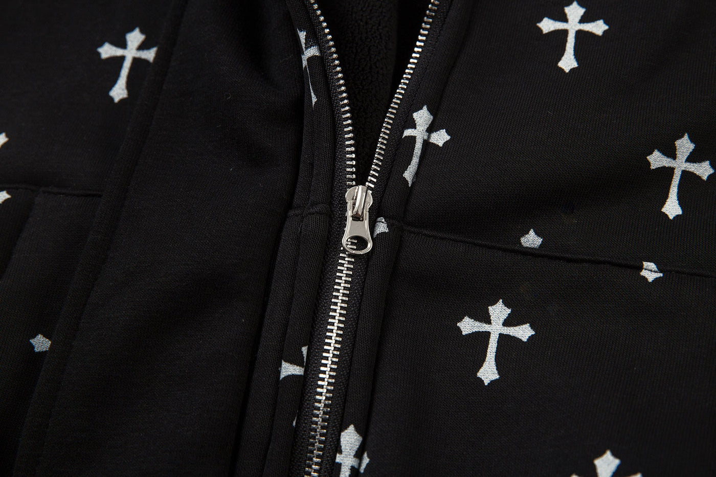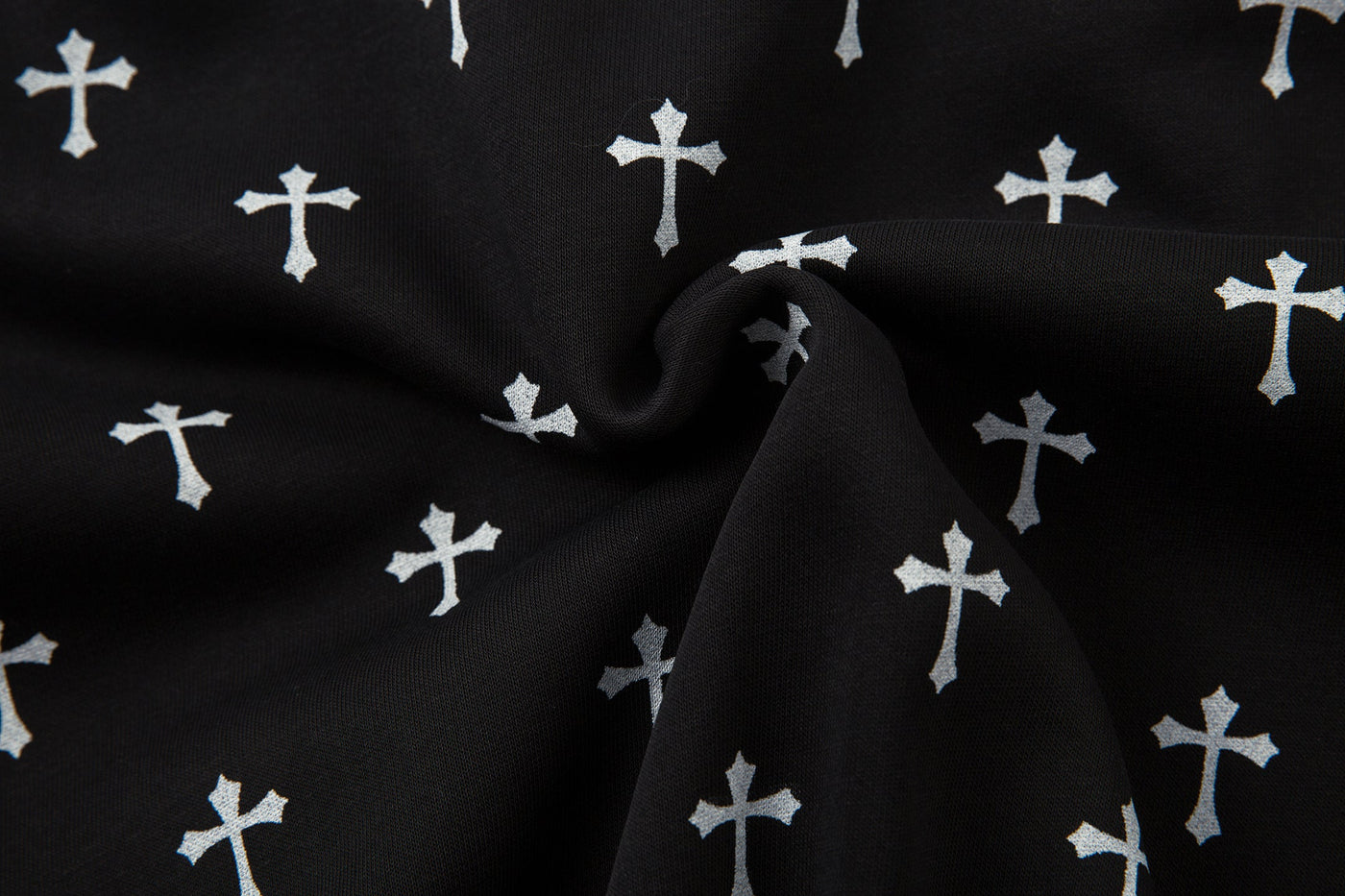 The Omirad Cross Print Faux Fur Hooded Jacket blends cozy warmth with bold street attitude. Featuring an all-over gothic cross pattern and detachable faux fur trim around the hood, it offers a perfect mix of statement design and functionality. The cropped fit and ribbed hem add structure, while the cotton-poly blend ensures comfort and durability for everyday layering.