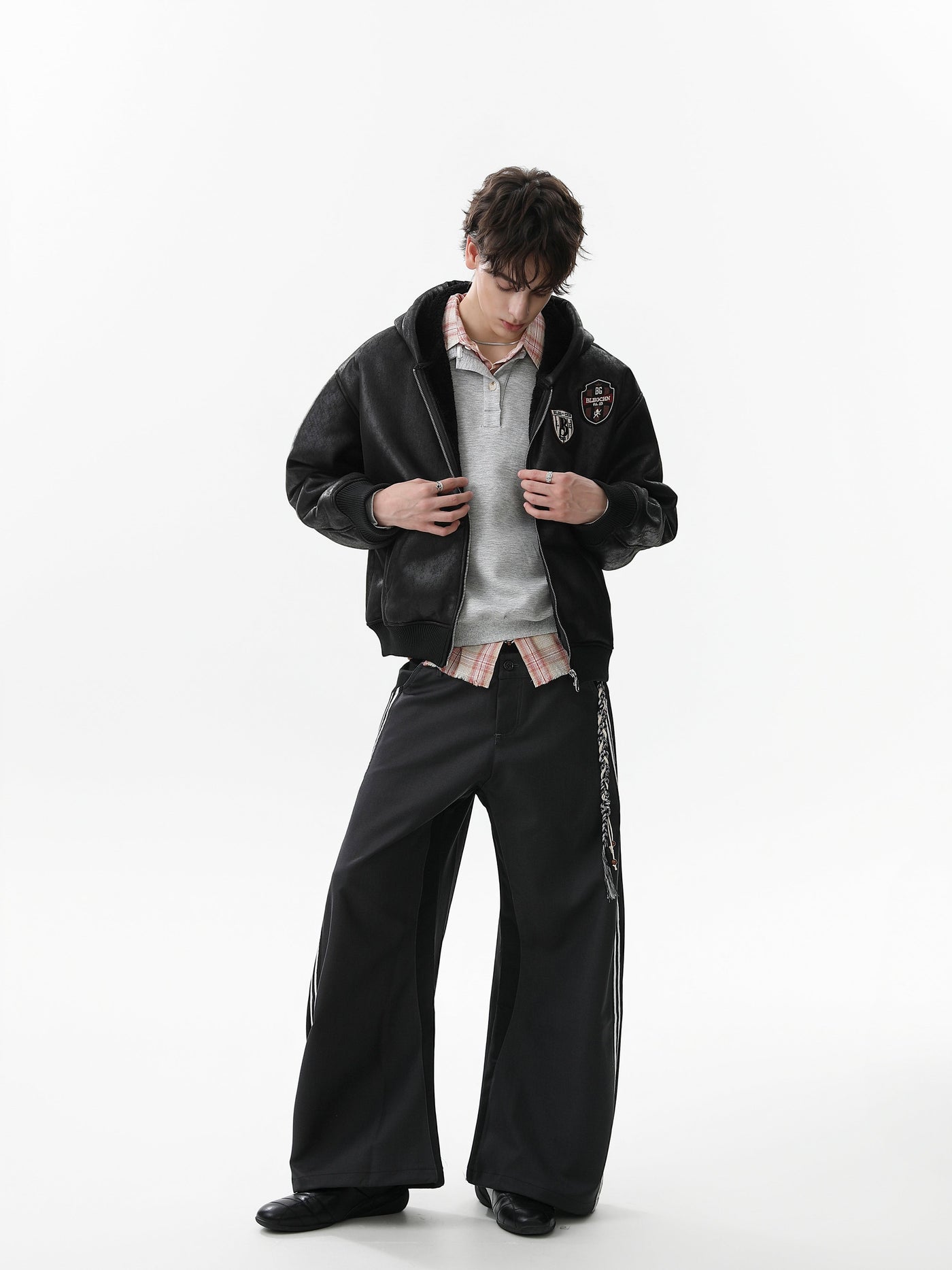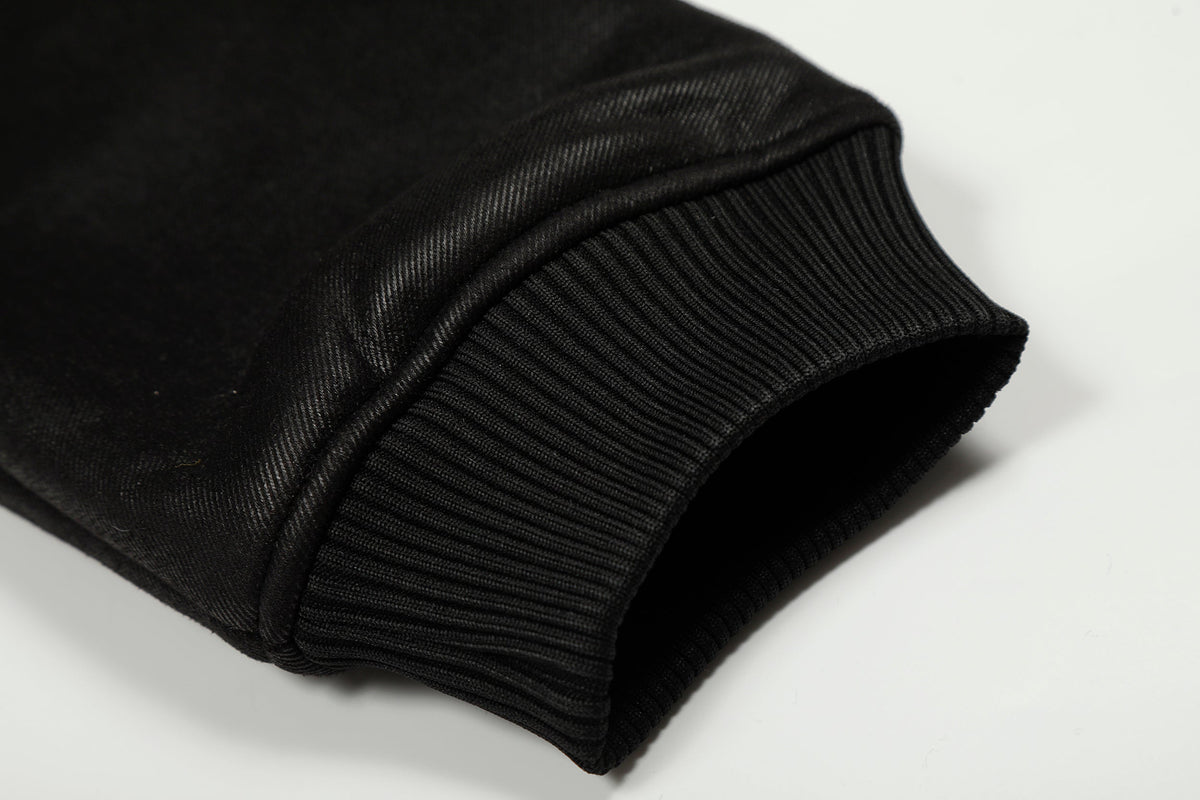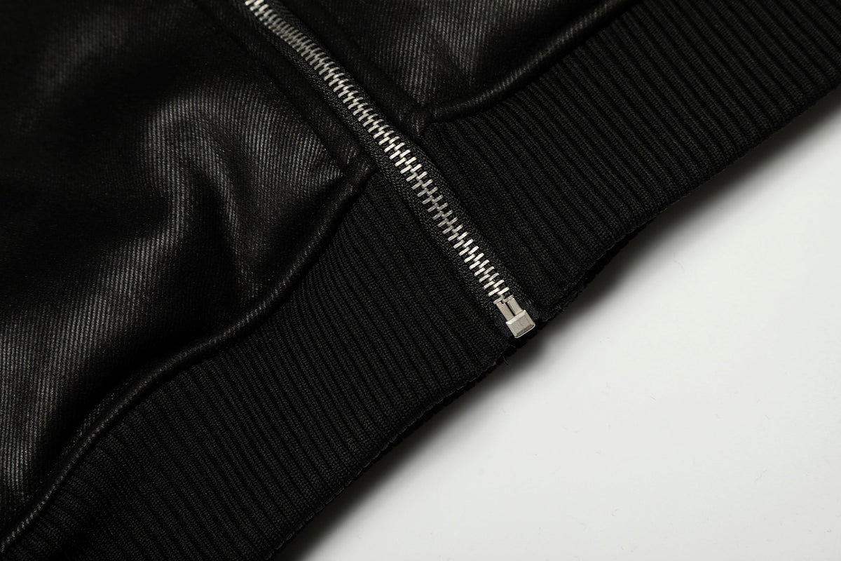The Omirad Badge PU Leather Hooded Jacket brings vintage varsity energy to the streets. Made from smooth faux leather with a soft fleece lining, it delivers warmth and texture in equal measure. Signature embroidered badges on the chest and sleeve add a retro touch, while the ribbed hem and cuffs keep the fit structured. Perfect for layering with hoodies or tees through cooler months.